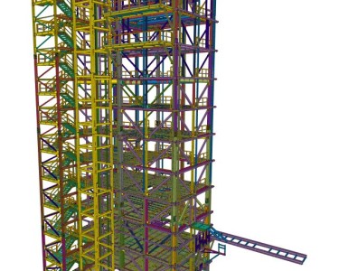 Design tasks: 100 m3 external silo support structure incl. piling design, 12 m span pipe bridge, redesign and check of steel floor zones