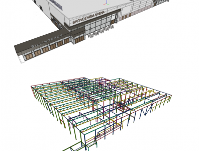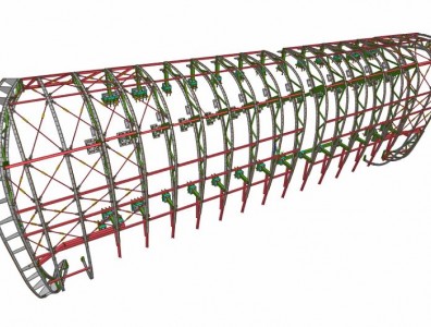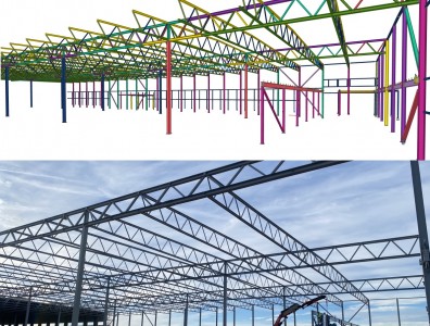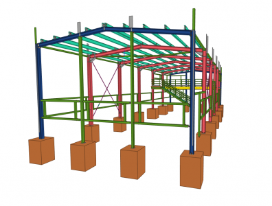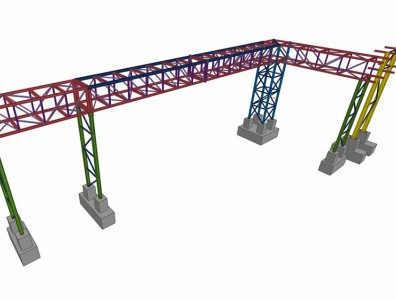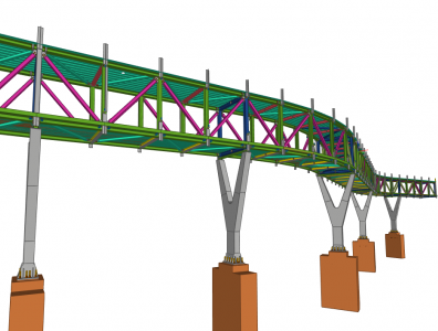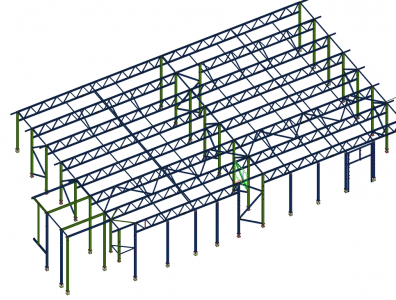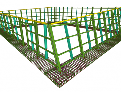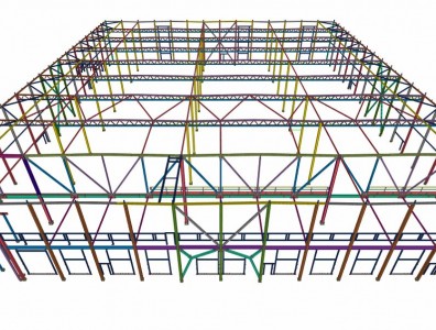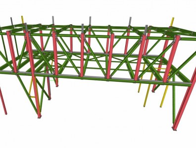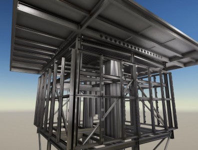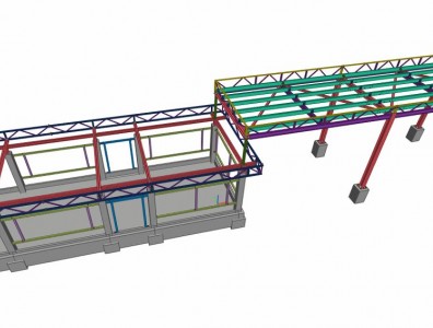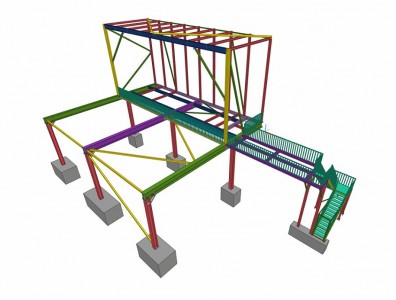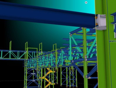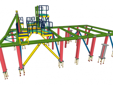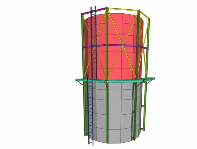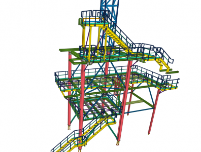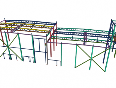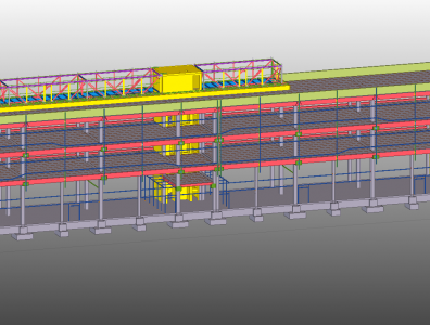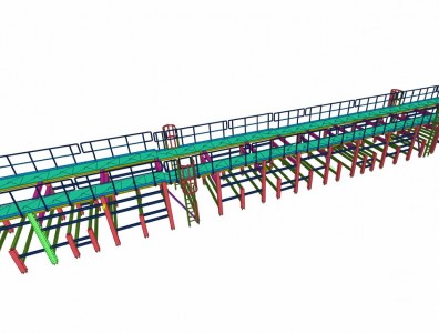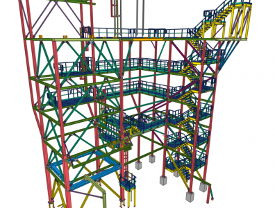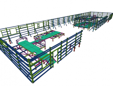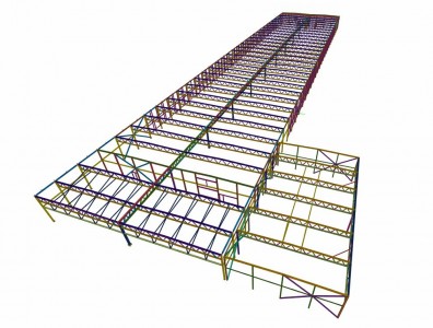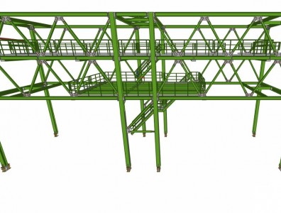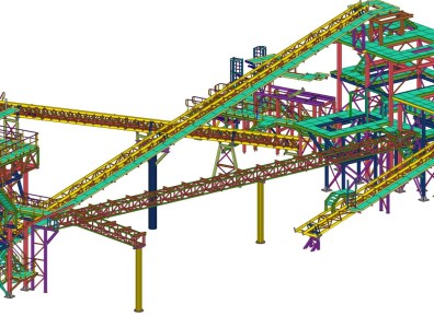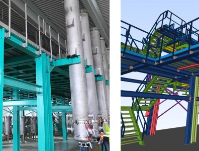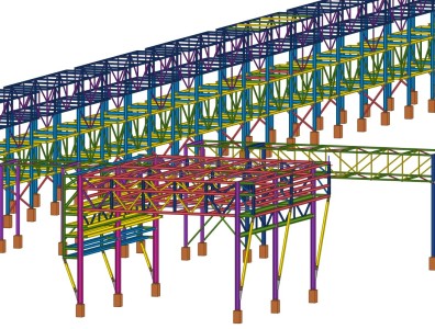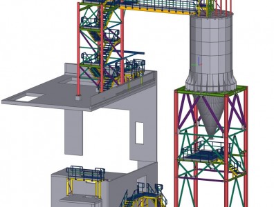 Design tasks: 100 m3 external silo support structure incl. piling design, 12 m span pipe bridge, redesign and check of steel floor zones