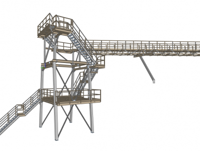 2 pcs. belt conveyor frames with tower, 33 m span, Mukran, Germany
